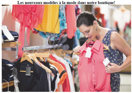 Vous avez décidé d’acheter de nouveaux vêtements dans ce magasin et vous cherchez des informations à ce propos. Après 1 mn 30 de réflexion, vous posez cinq questions directes pour préciser :